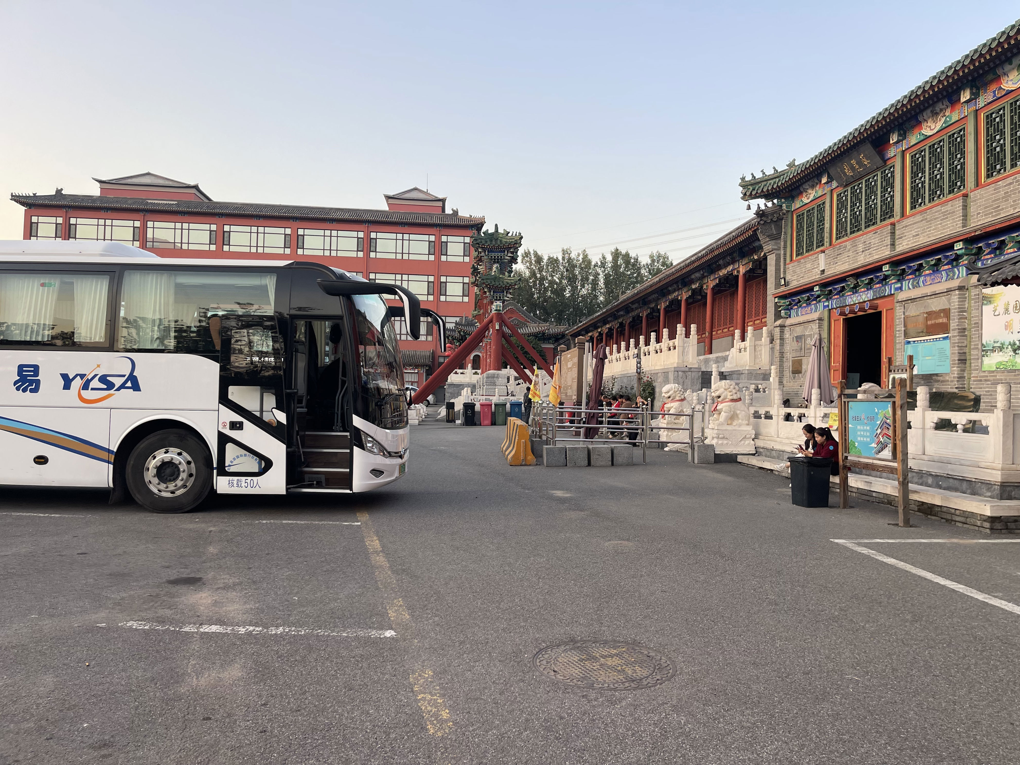 艺麓园门外,停放着多辆旅游大巴车。新京报记者 吴婷婷 摄